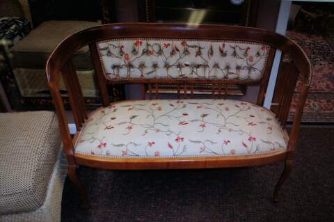 Early 20th C. Settee French Country Antique Floral Upholstered Love Seat Tufted