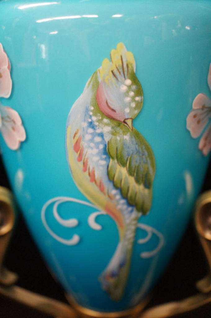 Pair Of 2 Handpainted Fenton Art Glass Landmark Collection Turquoise Vases