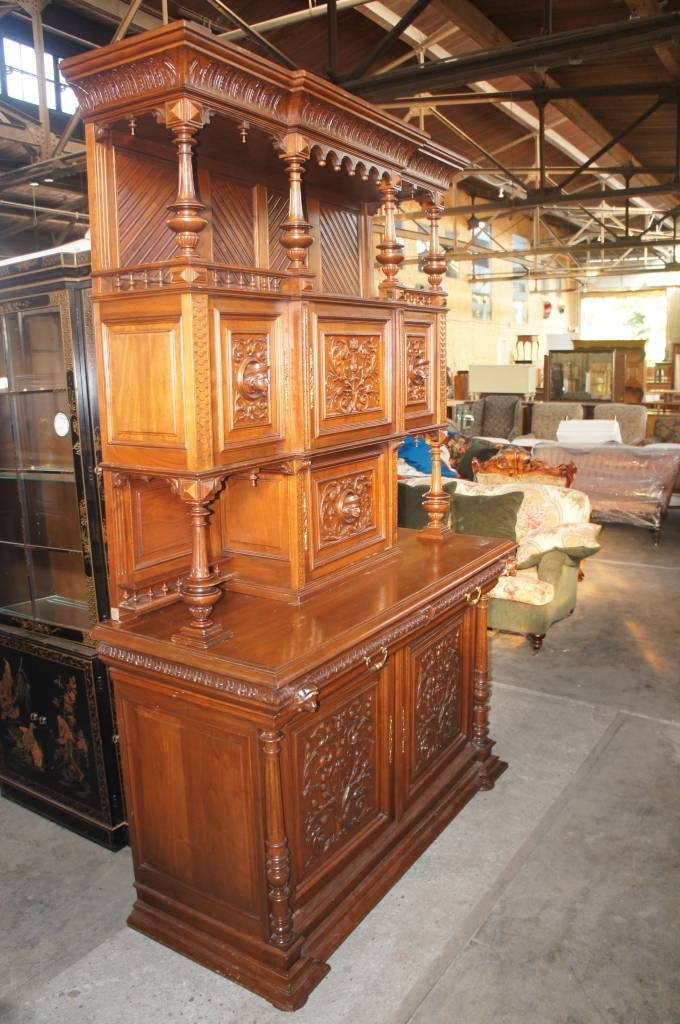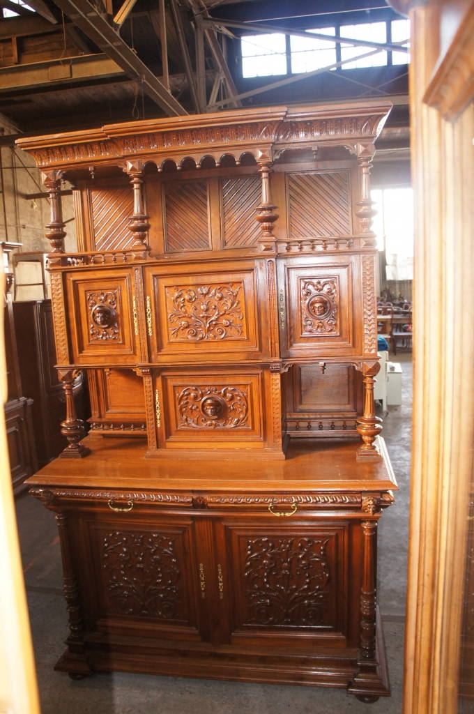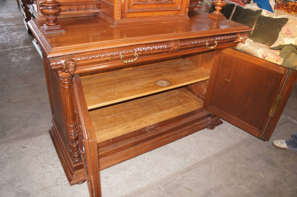 Renaissance Revival Hand Carved Server Aesthetic Floral Hutch W/ Faces Finial