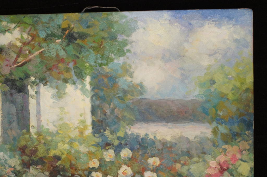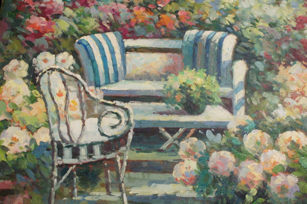 1 Original Fancy Flower Garden Impressionist Oil Painting Signed T. Vendi