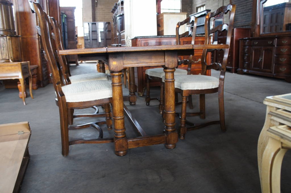 Early 20th Century, Century Furniture Co. Fold Top Table & Chairs Turned Oak