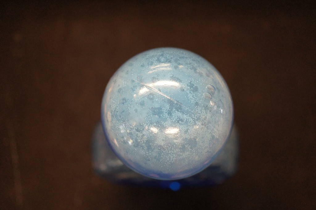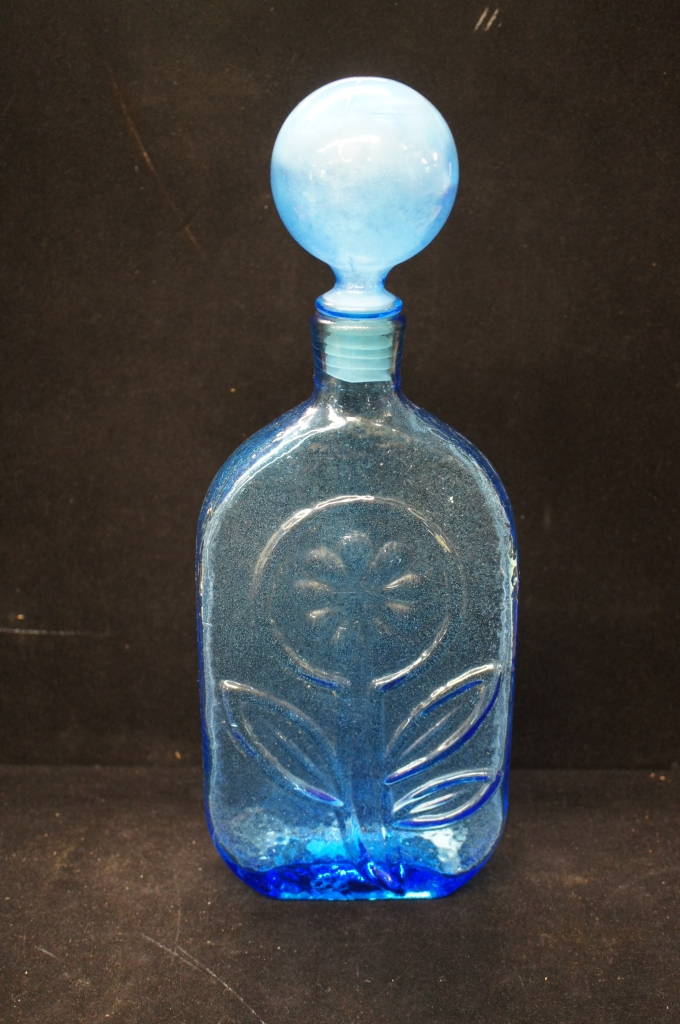 1 Sky Blue Floral Design Art Glass Decanter w/ Round Ball Topper 14 3/8" Tall