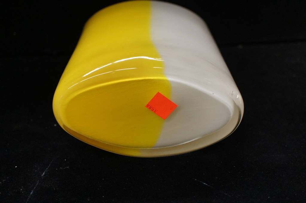 1 Vintage Medium Yellow & White Cased Glass Home Decor Vase