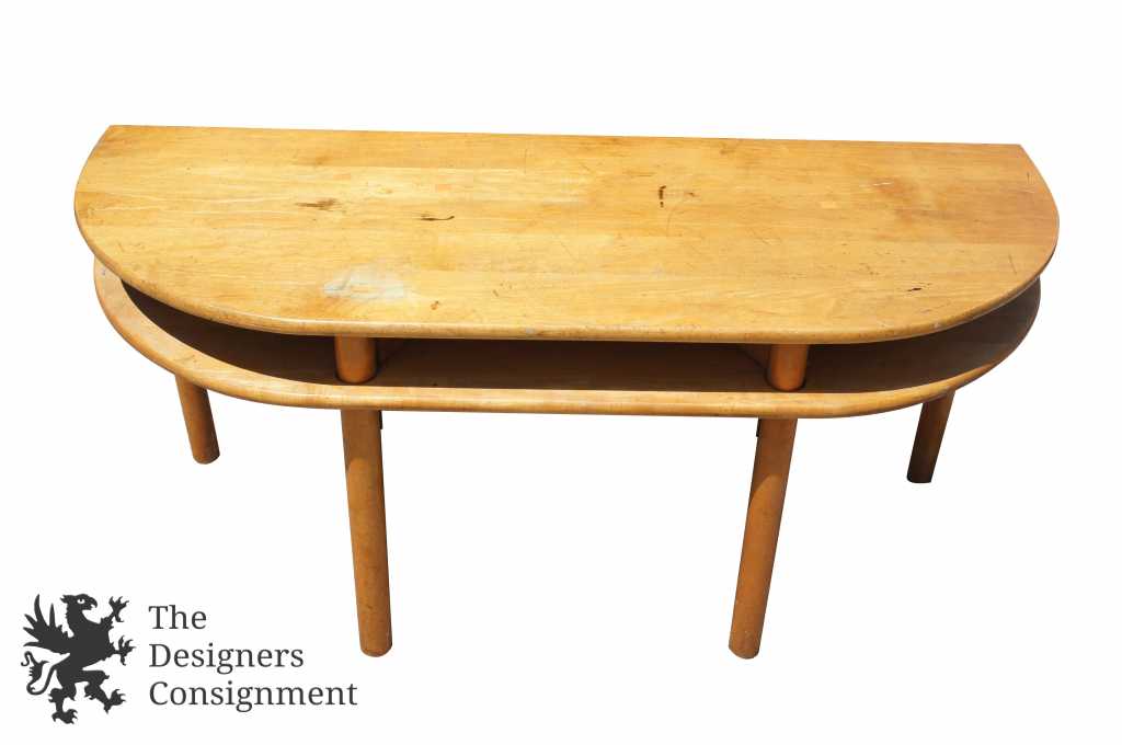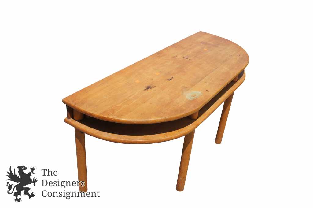 Mid Century Blonde Demilune Console Side End Accent Table with Shelf