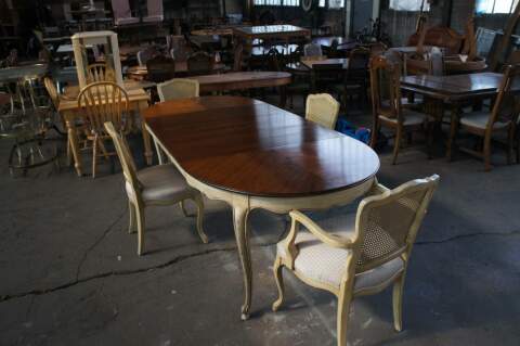 Kindel French Provincial Parquetry Dinette Set Table & 4 Upholstered Chairs