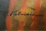 Here is a stunning painting by M. Valmain. A French painter with extraordinary use of color. This piece depicts a young girl dressed well with a basket of flowers.