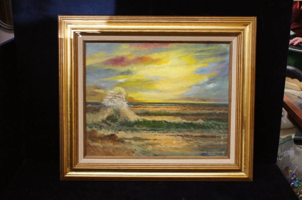 Original Signed Sunset Oil Painting By Frank Willis , removed
