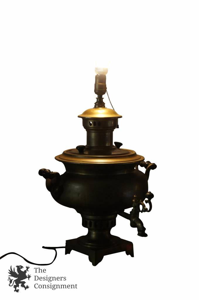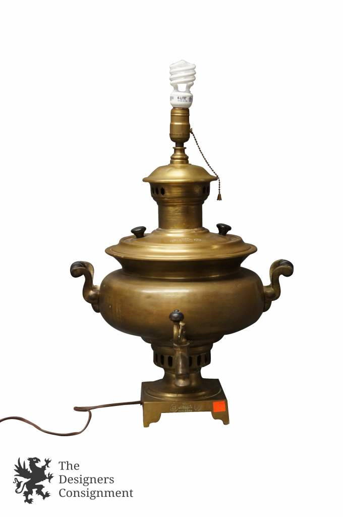 C. 1870s Tula Brass Samovar Converted Lamp