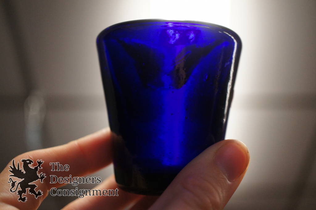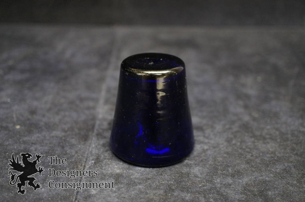 Vintage Cobalt Blue Glass Inkwell Pot Calligraphy Toothpick Holder