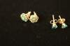 2 Pairs of Emerald Earrings Beautiful Clover Green Medallion Gold Oval