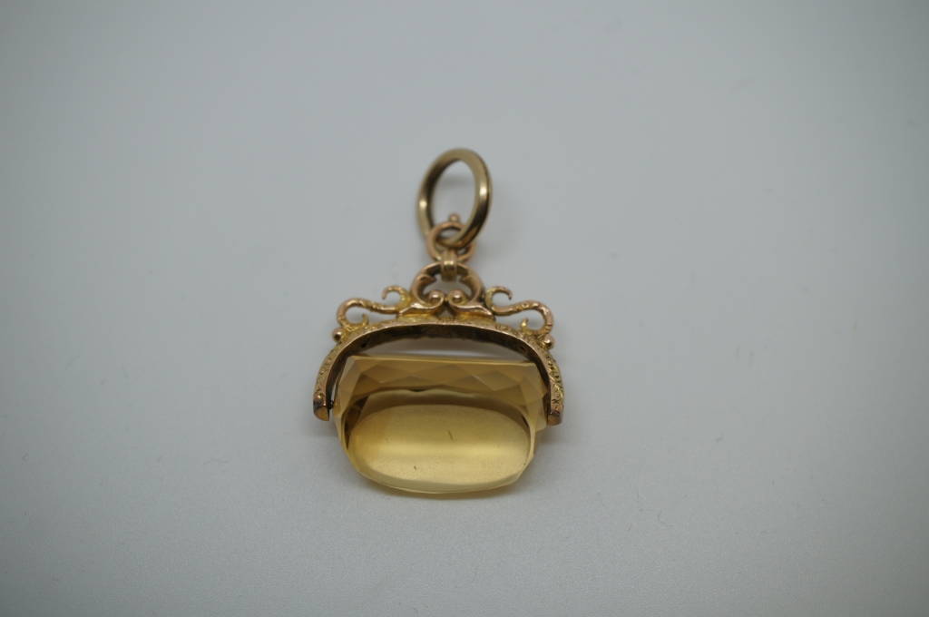 Victorian Rare Ladies 9k Gold Spinning Citrine Pendant Charm Necklace Ct .375