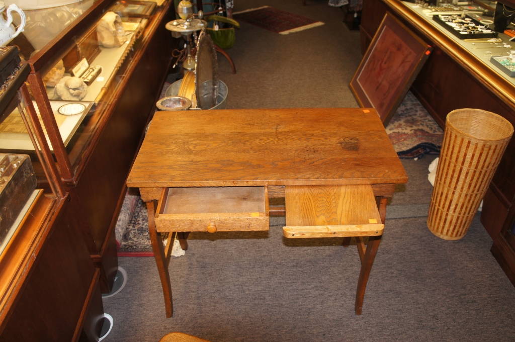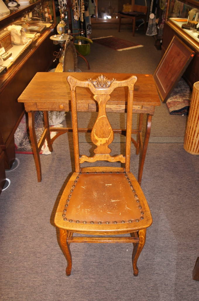 Small Antique Knockdown Writing Desk Oak W/ Small Eastlake Chair Drawer Table