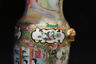 This is a great piece from mid to late 19th century China. It is a Famille Rose vase and it is decorated with floral rose patterns, hand painted hummingbirds and Butterflies, as well as some traditional scenes from Chinese life. This piece also has handles that look like they might be a lion or Fu Dog head. This is a truly beautiful piece and it would make a wonderful addition to your home or collection.