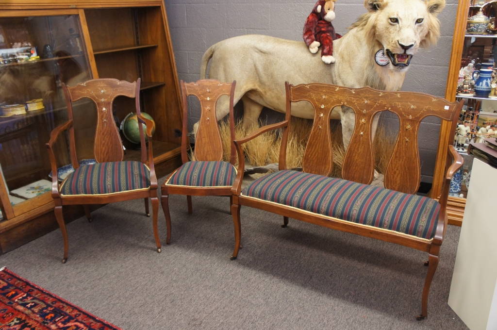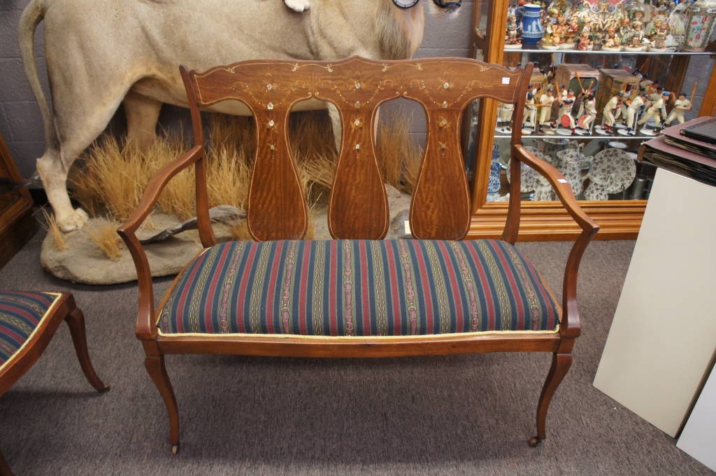 Colonial Revival Art Nouveau Mother Of Pearl Inlay Parlor Set Settee , picked up removed