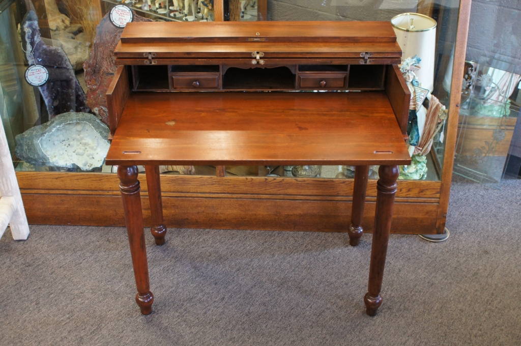Vintage Antique Wooden Spindle Side Table Entry Way Flip Top Desk 34.25