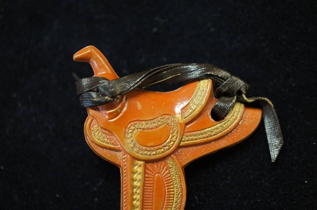 Vintage Bakelite Leather Cowboy Western Horse Saddle Pin Brooch 2.25" x 1.75