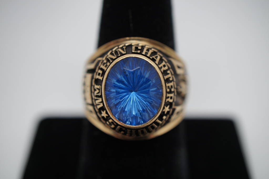 Vintage Mens 1980 14k Gold Sapphire WM Penn Charter School Class Ring Size 10