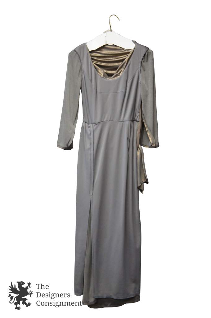Here is a beautiful formal evening gown by Tadashi Shoji. Features a unique Metallic Silver/ Goldappearance. The gold shimmers through making the dress look more gold then silver. Will make a delightful addition to your wardrobe. A splendid dress for the right occasion