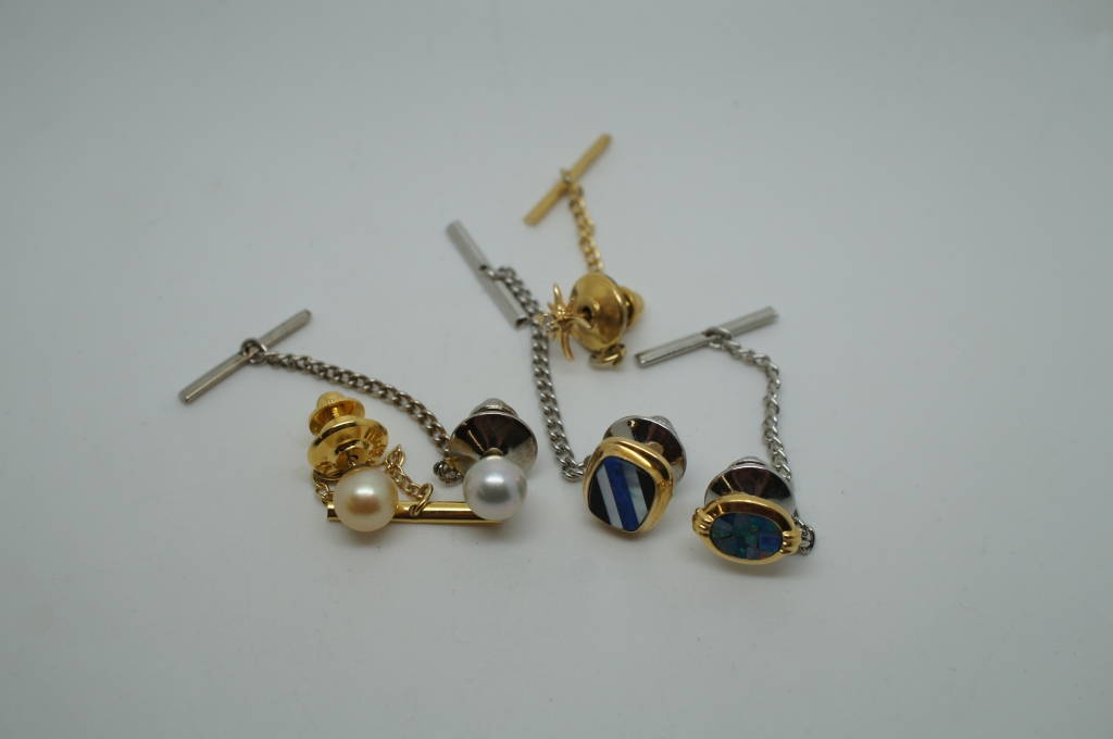 Vintage Lot Of 5 Very Nice Rare 14k D-9 Gold Pearl Mens Tie Pins Accessories
