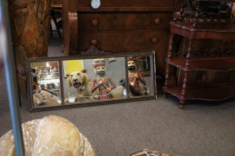 Antique Victorian 3 Panel 4 ft Silver Mirror Ornate Frame Floral Etching Mantel