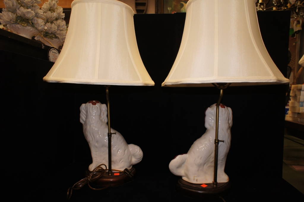 Magnificent Antique Red & White Staffordshire Spaniel Figurine Dog Lamp Set Pair