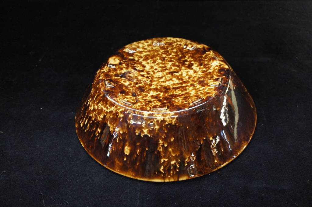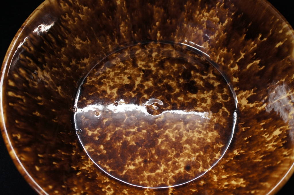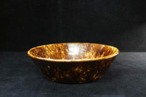 Vintage Antique Round Dark Brown Earthenware Spongeware Pottery Home Decor Bowl