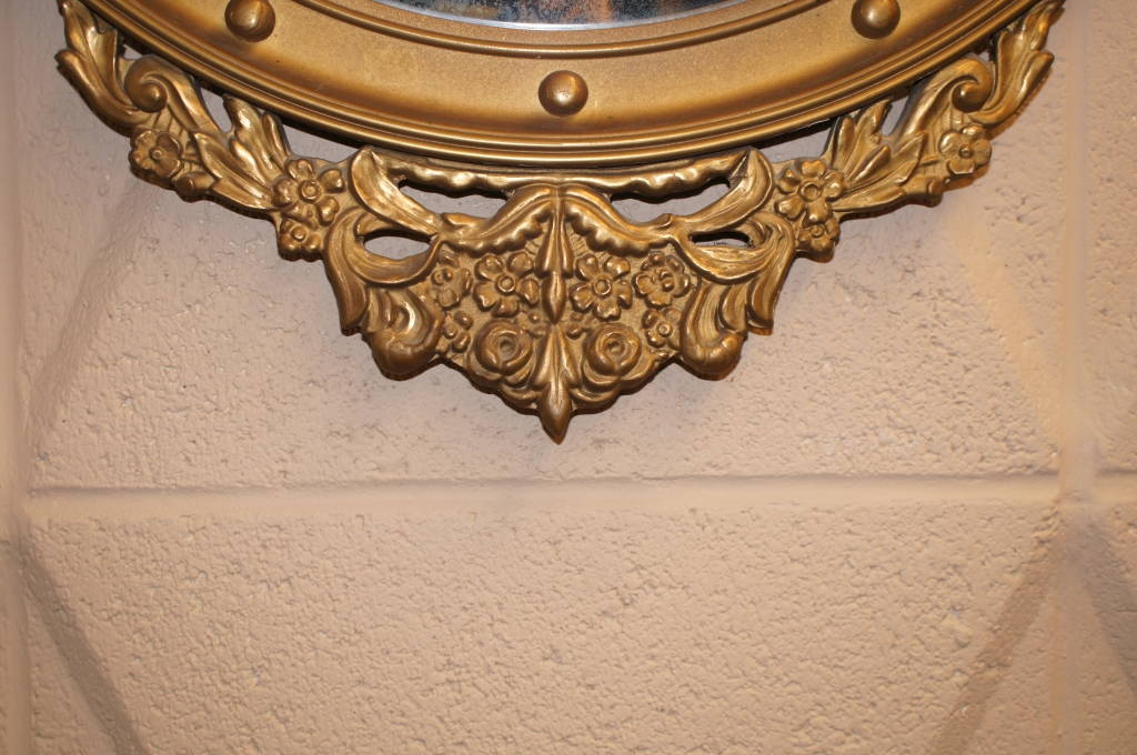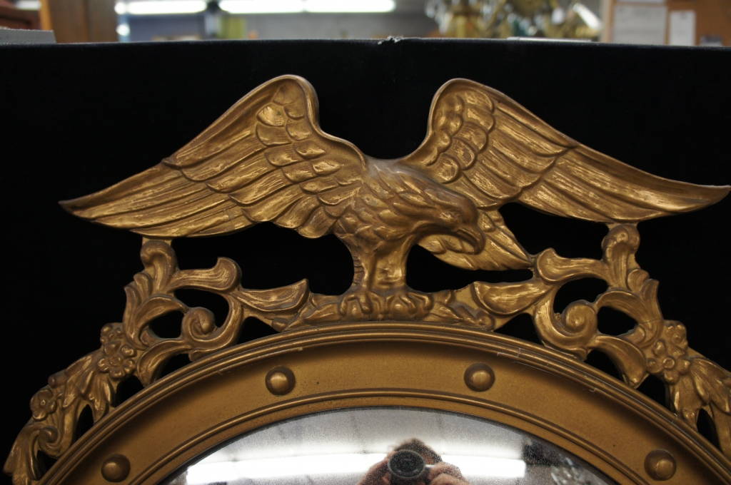 Vintage Round Gilded Federal Style Carved Eagle Convex Bulls Eye Mirror 31