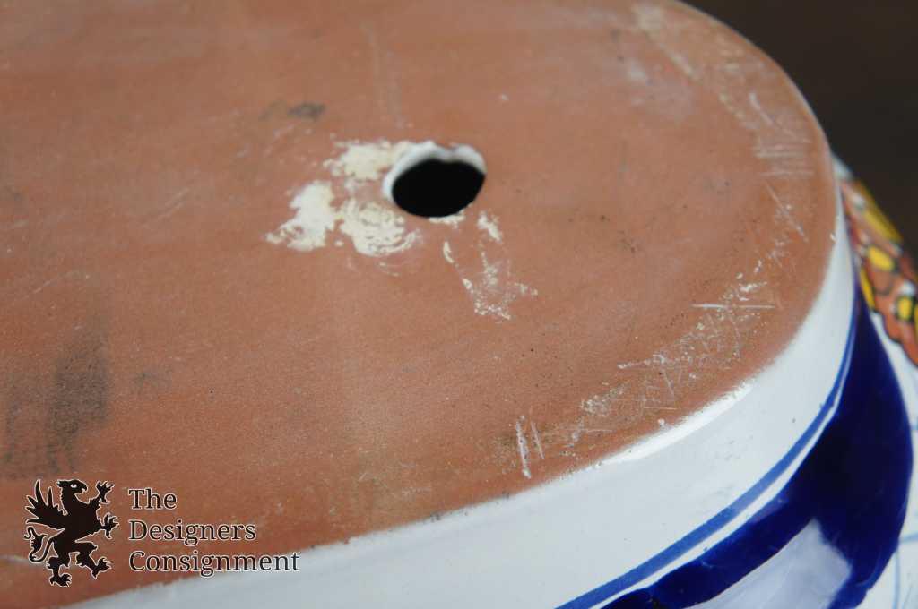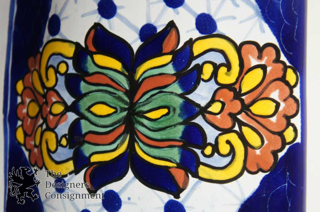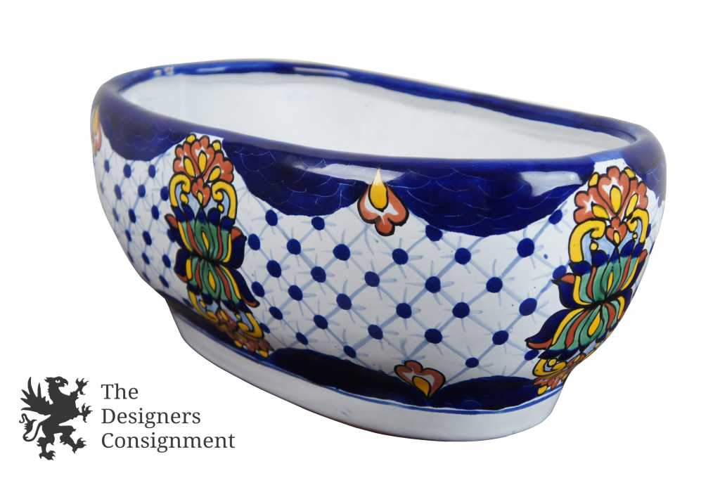 Large Vintage Painted Portuguese Cachepot Planter Flower Pot Portugal Blue White